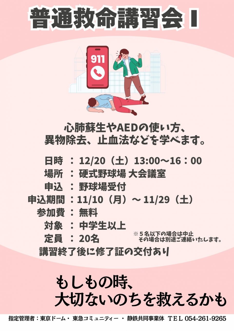 ご家族や友人のもしものとき、必ず役に立つ知識や技術が学べます。