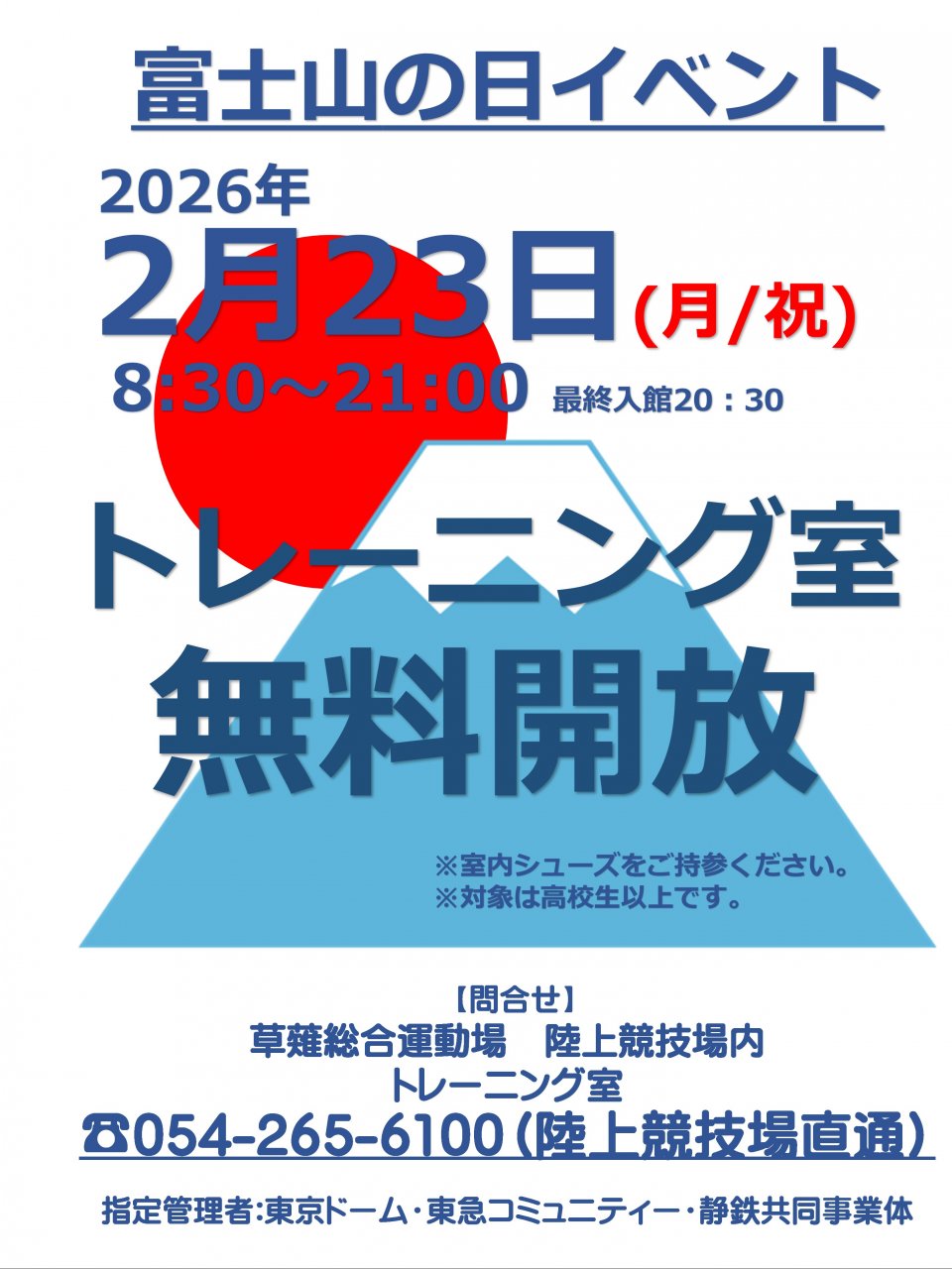 富士山の日のイベントとしまして下記日時トレーニング室が無料でご利用できます!!