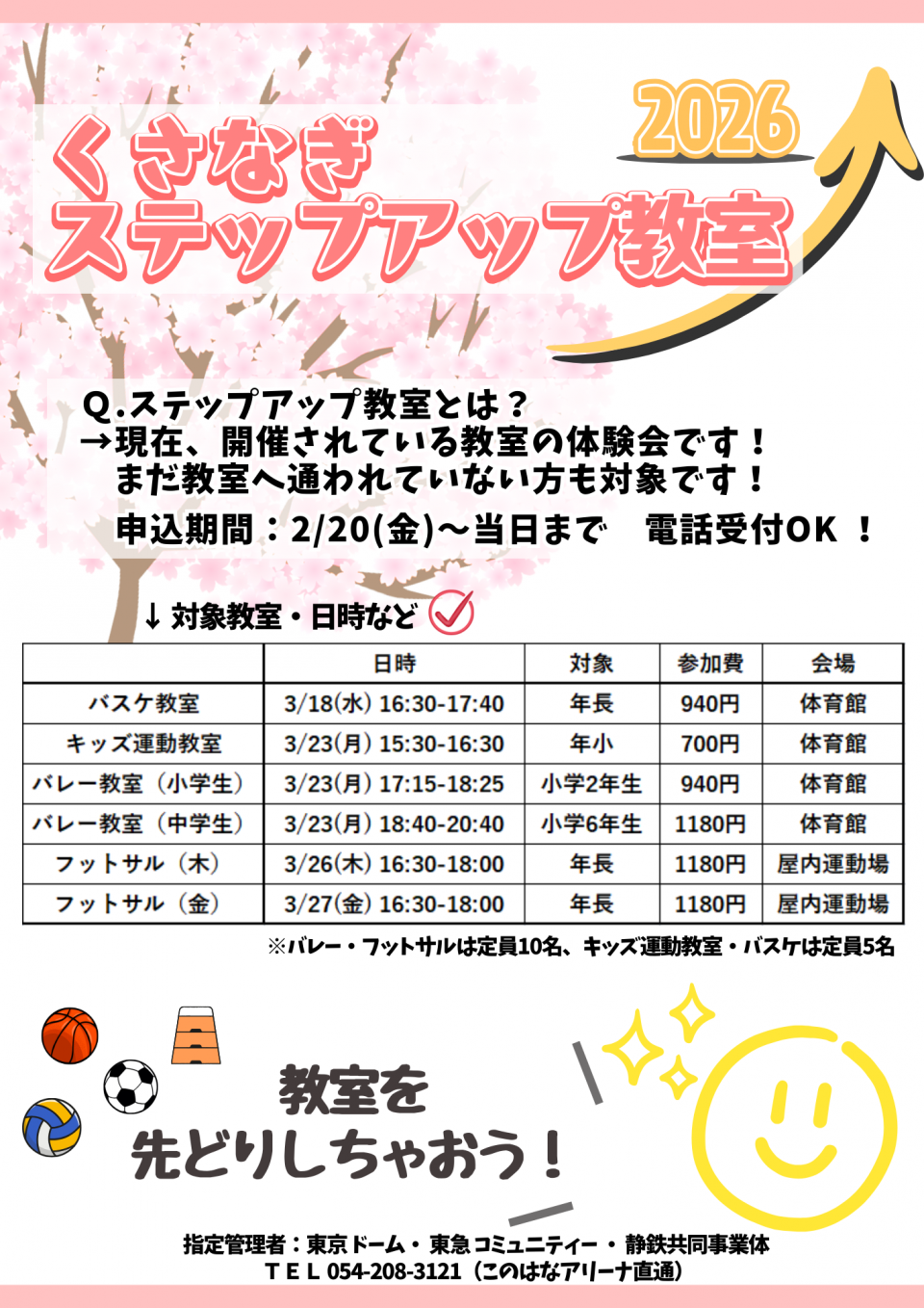 2/20(金)から各教室当日まで、電話受付も可能です!