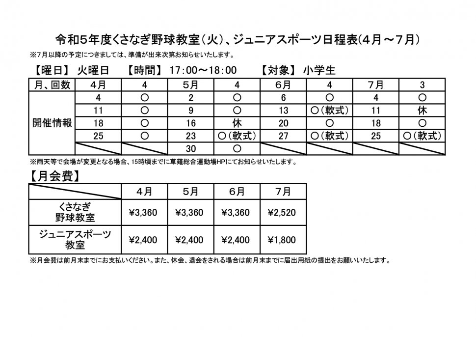 ⇒ 硬式野球場 窓口 ⇒教室:野球教室、ジュニアスポーツ教室